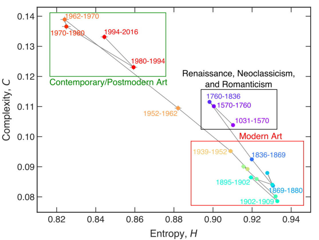 Sigaki H.Y.D., Perc M., Ribeiro H.V. History of art paintings through the lens of entropy and complexity // PNAS. 2018. Vol. 115, № 37. P. E8585–E8594.